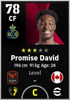. Promise David is a Center Forward footballer from Canada who plays for Saint-Gilles Bg in eFootball 2026.