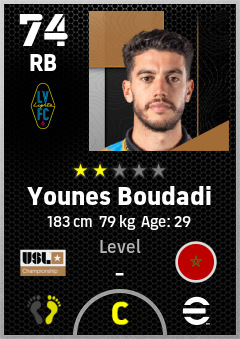 . Younes Boudadi is a Right Back footballer from Morocco who plays for Las Vegas Lights Fc in eFootball 2026.