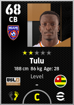 . Tulu is a Center Back footballer from Togo who plays for Miami Fc in eFootball 2026.