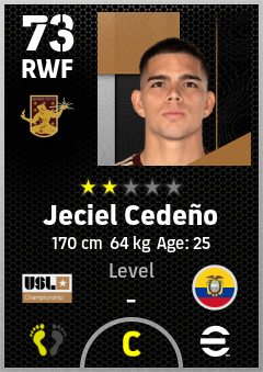 . Jeciel Cedeño is a Right Wing Forward footballer from Ecuador who plays for Detroit City Fc in eFootball 2026.