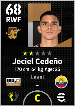 . Jeciel Cedeño is a Right Wing Forward footballer from Ecuador who plays for Detroit City Fc in eFootball 2026.