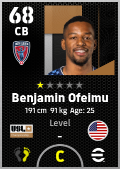 . Benjamin Ofeimu is a Center Back footballer from United States who plays for Indy Eleven in eFootball 2026.