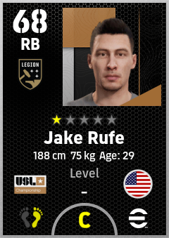 . Jake Rufe is a Right Back footballer from United States who plays for Birmingham Legion Fc in eFootball 2026.