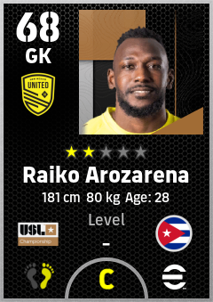 . Raiko Arozarena is a Goalkeeper footballer from Cuba who plays for New Mexico United in eFootball 2026.