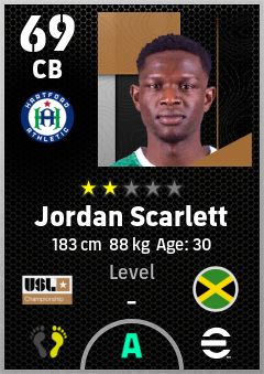 . Jordan Scarlett is a Center Back footballer from Jamaica who plays for Hartford Athletic in eFootball 2026.