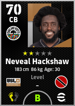 . Neveal Hackshaw is a Center Back footballer from Trinidad And Tobago who plays for Oakland Roots Sc in eFootball 2026.