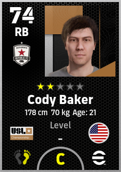 . Cody Baker is a Right Back footballer from United States who plays for Sacramento Republic Fc in eFootball 2026.
