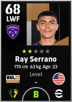 . Ray Serrano is a Left Wing Forward footballer from United States who plays for Louisville City Fc in eFootball 2026.