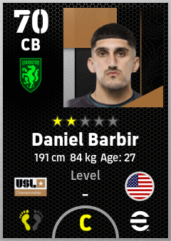. Daniel Barbir is a Center Back footballer from United States who plays for Lexington Sc in eFootball 2026.