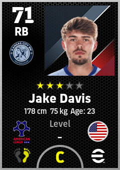 . Jake Davis is a Right Back footballer from United States who plays for Kansas City Bw in eFootball 2026.