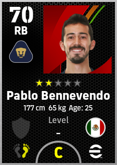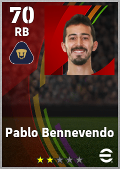 . Pablo Bennevendo is a Right Back footballer from Mexico who plays for Pumas in eFootball 2026.