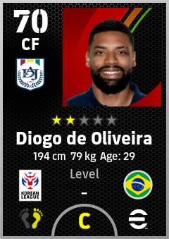. Diogo De Oliveira is a Center Forward footballer from Brazil who plays for Daejeon Rgw in eFootball 2026.