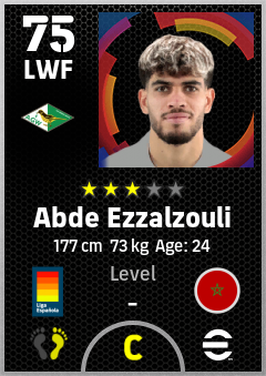. Abde Ezzalzouli is a Left Wing Forward footballer from Morocco who plays for Sevilla Triana Vb in eFootball 2026.