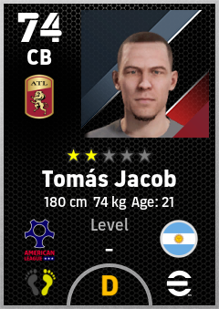 . Tomás Jacob is a Center Back footballer from Argentina who plays for Atlanta Rb in eFootball 2026.