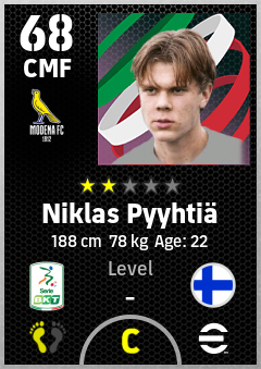 . Niklas Pyyhtiä is a Center Midfielder footballer from Finland who plays for Modena Gb in eFootball 2026.
