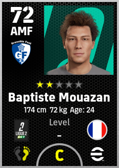 . Baptiste Mouazan is a Attacking Midfielder footballer from France who plays for Grenoble Foot 38 in eFootball 2026.