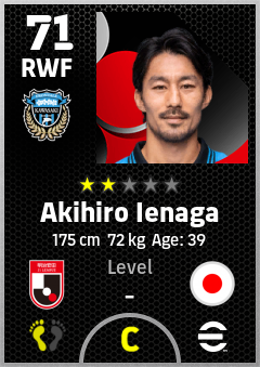. Akihiro Ienaga is a Right Wing Forward footballer from Japan who plays for Kawasaki Frontale in eFootball 2026.