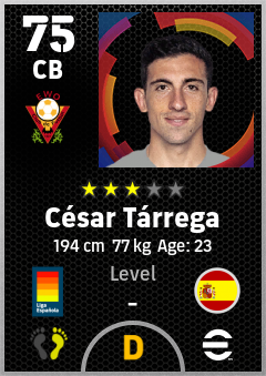 . César Tárrega is a Center Back footballer from Spain who plays for Valencia Bn in eFootball 2026.