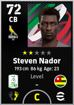 . Steven Nador is a Center Back footballer from Togo who plays for Modena Gb in eFootball 2026.
