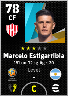 . Marcelo Estigarribia is a Center Forward footballer from Argentina who plays for Santa Fe Rb in eFootball 2026.