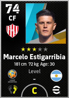 . Marcelo Estigarribia is a Center Forward footballer from Argentina who plays for Santa Fe Rb in eFootball 2026.
