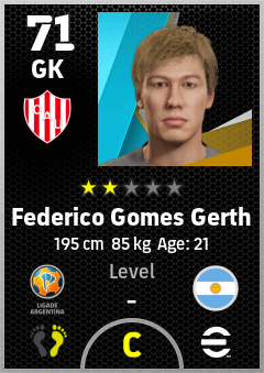 . Federico Gomes Gerth is a Goalkeeper footballer from Argentina who plays for Santa Fe Rb in eFootball 2026.