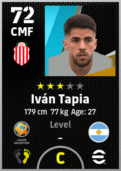 . Iván Tapia is a Center Midfielder footballer from Argentina who plays for Barracas Rb in eFootball 2026.