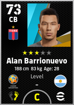 . Alan Barrionuevo is a Center Back footballer from Argentina who plays for Victoria Ar in eFootball 2026.