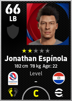 . Jonathan Espínola is a Left Back footballer from Paraguay who plays for Concepción M in eFootball 2026.