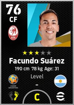 . Facundo Suárez is a Center Forward footballer from Argentina who plays for Alta Córdoba Rb in eFootball 2026.