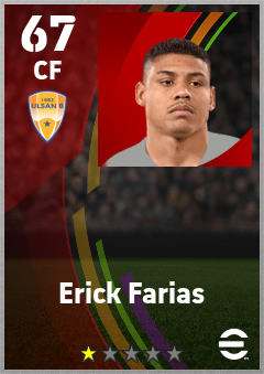 . Erick Farias is a Center Forward footballer from Brazil who plays for Ulsan B in eFootball 2026.