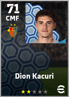 . Dion Kacuri is a Center Midfielder footballer from Switzerland who plays for Basel Rb in eFootball 2026.