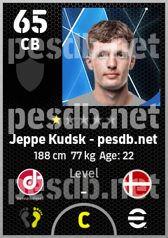. Jeppe Kudsk is a Center Back footballer from Denmark who plays for Fredericia Rs in eFootball 2026.