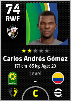 . Carlos Andrés Gómez is a Right Wing Forward footballer from Colombia who plays for Cr Vasco Da Gama in eFootball 2026.