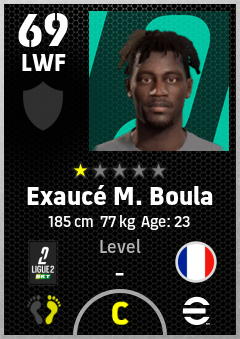 . Exaucé M. Boula is a Left Wing Forward footballer from France who plays for Us Boulogne Co in eFootball 2026.