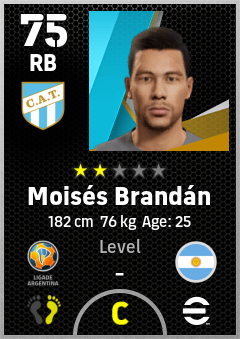 . Moisés Brandán is a Right Back footballer from Argentina who plays for Tucumán Ab in eFootball 2026.