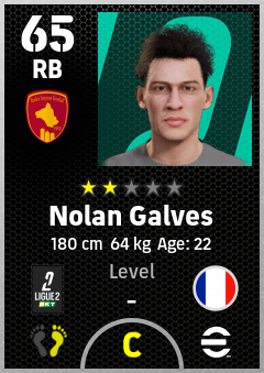 . Nolan Galves is a Right Back footballer from France who plays for Rodez Aveyron Football in eFootball 2026.
