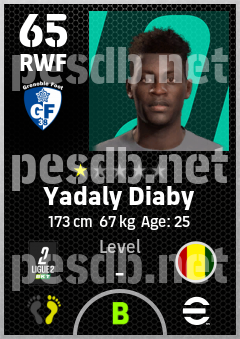 . Yadaly Diaby is a Right Wing Forward footballer from Guinea who plays for Grenoble Foot 38 in eFootball 2026.