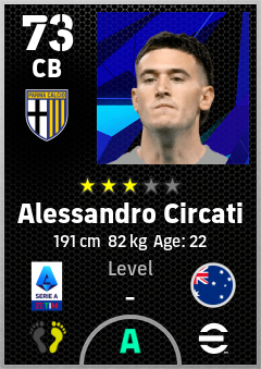 . Alessandro Circati is a Center Back footballer from Australia who plays for Parma Calcio 1913 in eFootball 2026.