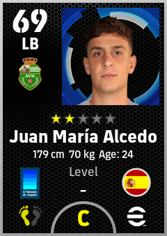 . Juan María Alcedo is a Left Back footballer from Spain who plays for Córdoba Vb in eFootball 2026.
