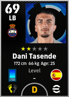 . Dani Tasende is a Left Back footballer from Spain who plays for Zaragoza Ba in eFootball 2026.