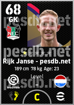 . Rijk Janse is a Goalkeeper footballer from Netherlands who plays for N.e.c. Nijmegen in eFootball 2026.