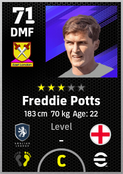 . Freddie Potts is a Defensive Midfielder footballer from England who plays for West Ham Rb in eFootball 2026.