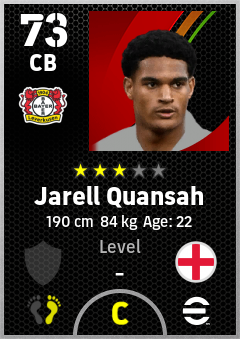 . Jarell Quansah is a Center Back footballer from England who plays for Bayer 04 Leverkusen in eFootball 2026.