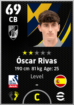 . Óscar Rivas is a Center Back footballer from Spain who plays for Vitória Sc in eFootball 2026.