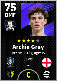 . Archie Gray is a Defensive Midfielder footballer from England who plays for Tottenham Wb in eFootball 2026.