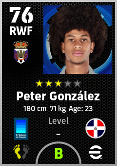 . Peter González is a Right Wing Forward footballer from Dominican Republic who plays for Valladolid Mb in eFootball 2026.