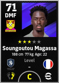 . Soungoutou Magassa is a Defensive Midfielder footballer from France who plays for West Ham Rb in eFootball 2026.