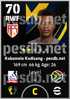 . Kobamelo Kodisang is a Right Wing Forward footballer from South Africa who plays for Avs Futebol in eFootball 2026.