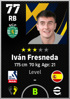 . Iván Fresneda is a Right Back footballer from Spain who plays for Sporting Cp in eFootball 2026.